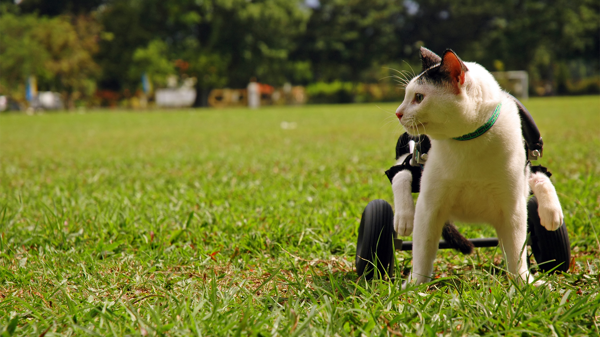 A háromlábú kutyus és a kerekesszékes cica a legjobb pajtik lettek