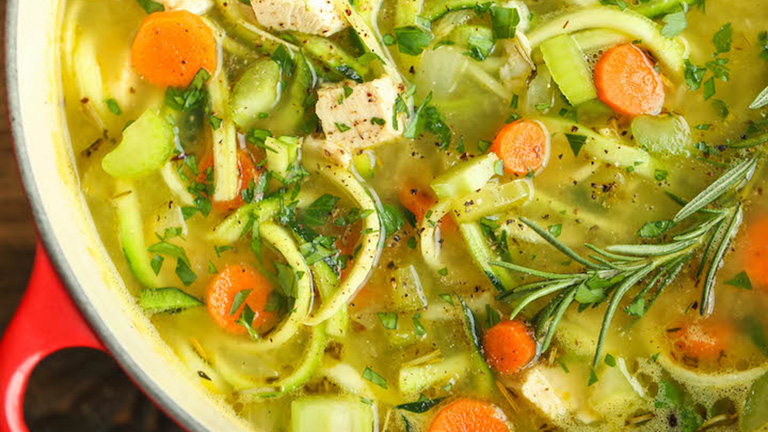 Egészséges és könnyű cukkinitésztás csirkeleves