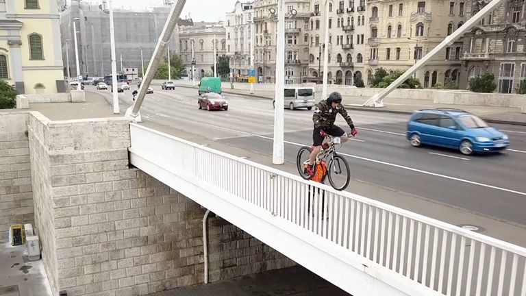 Az Erzsébet híd korlátján biciklizett egy magyar extrém sportoló – videó