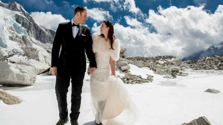 Hetekig küzdöttek az elemekkel, hogy a világ tetején házasodhassanak össze
