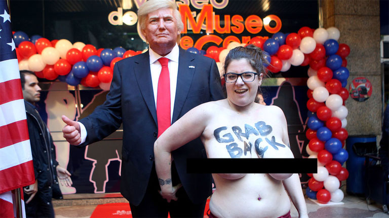 Félmeztelen nő zavarta meg a Trump-szobor avatását – videó