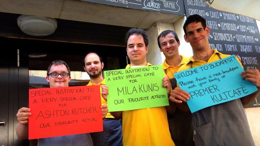 Ashton Kutchert és Mila Kunist várják egy budapesti kávézóba
