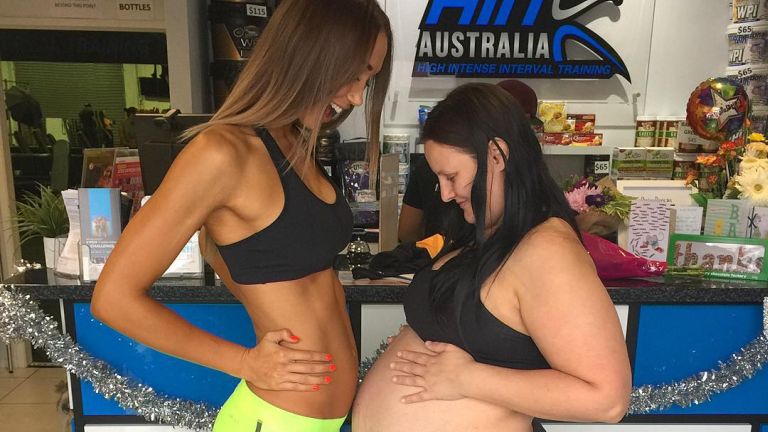 6 hónapos terhesen súlyt emel a fitneszmodell