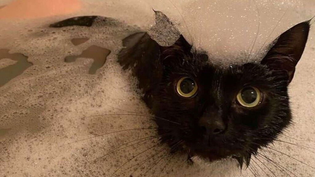 Imád a gazdájával fürdeni a vízimádó cica