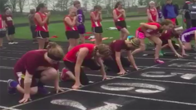 Nagyon nem sikerült a rajt ennek a futó lánynak – vicces videó