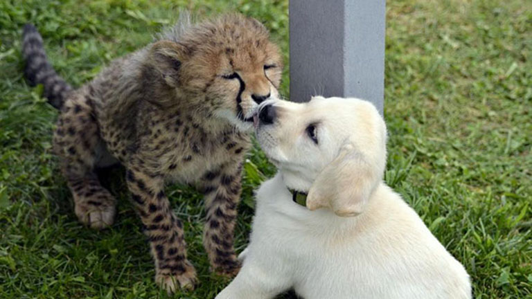 Hihetetlen: terápiás kutya nyugtatja meg az izgatott gepárdot, Nandit