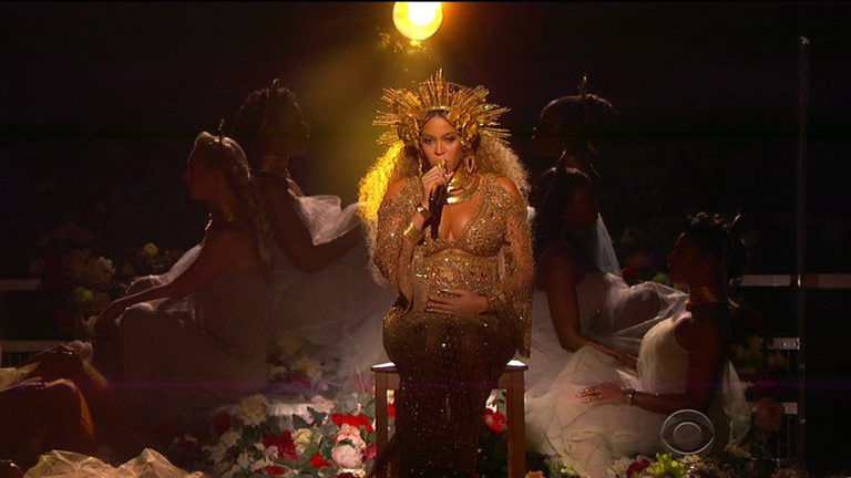 Aranybikiniben mutatta meg terhespocakját Beyoncé a Grammy-gálán