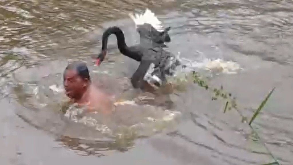 Úszni indult a férfi, harcias hattyúk támadtak rá – videó