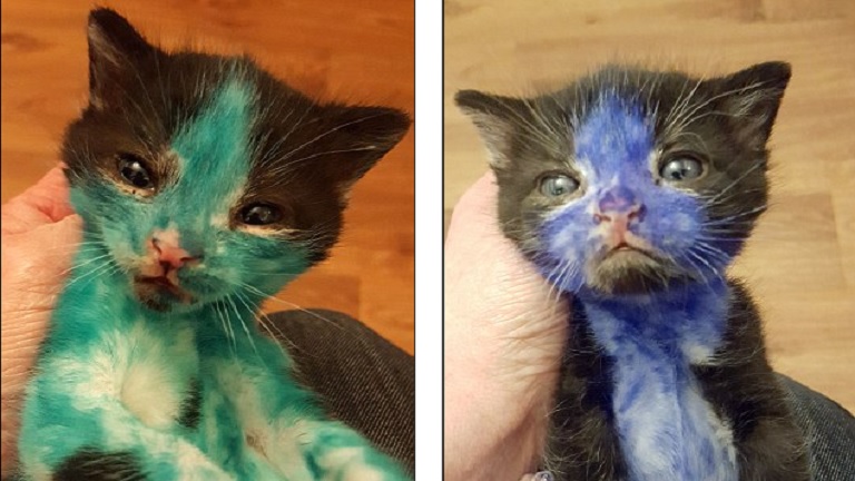 Kékre-zöldre festették a kiscicákat állatkínzó gazdáik – képek