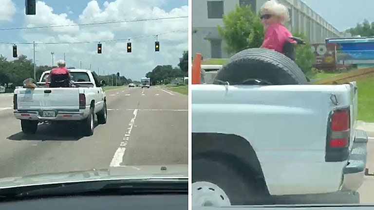 Megdöbbentő videó: pickup autó platóján utazott a kerekesszékes idő nő