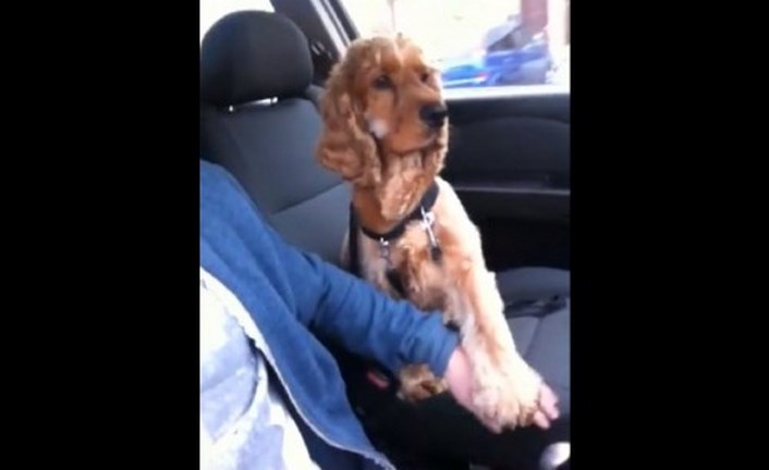 Csak úgy hajlandó autózni a kutya, ha gazdája vezetés közben fogja a mancsát – cuki videó