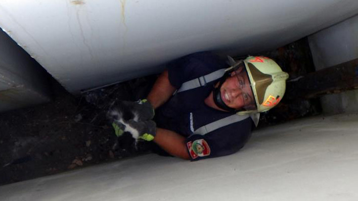 Aknából húzták ki a kiscicát a bajai tűzoltók