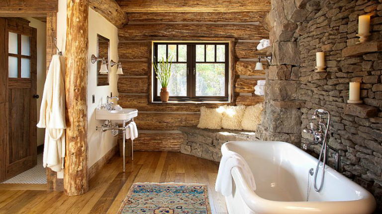 10 gyönyörű kőfallal borított fürdőszoba – fotók