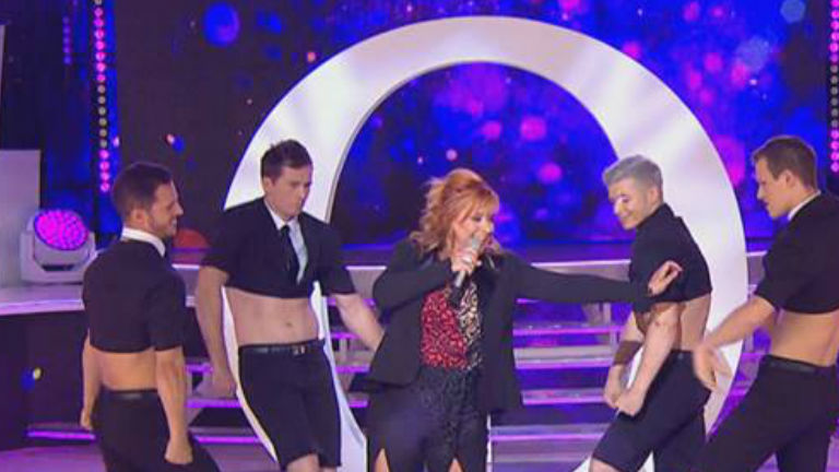 Szulák Andrea csipkében, csípőig sliccelt nadrágban dögös Kylie Minogue volt