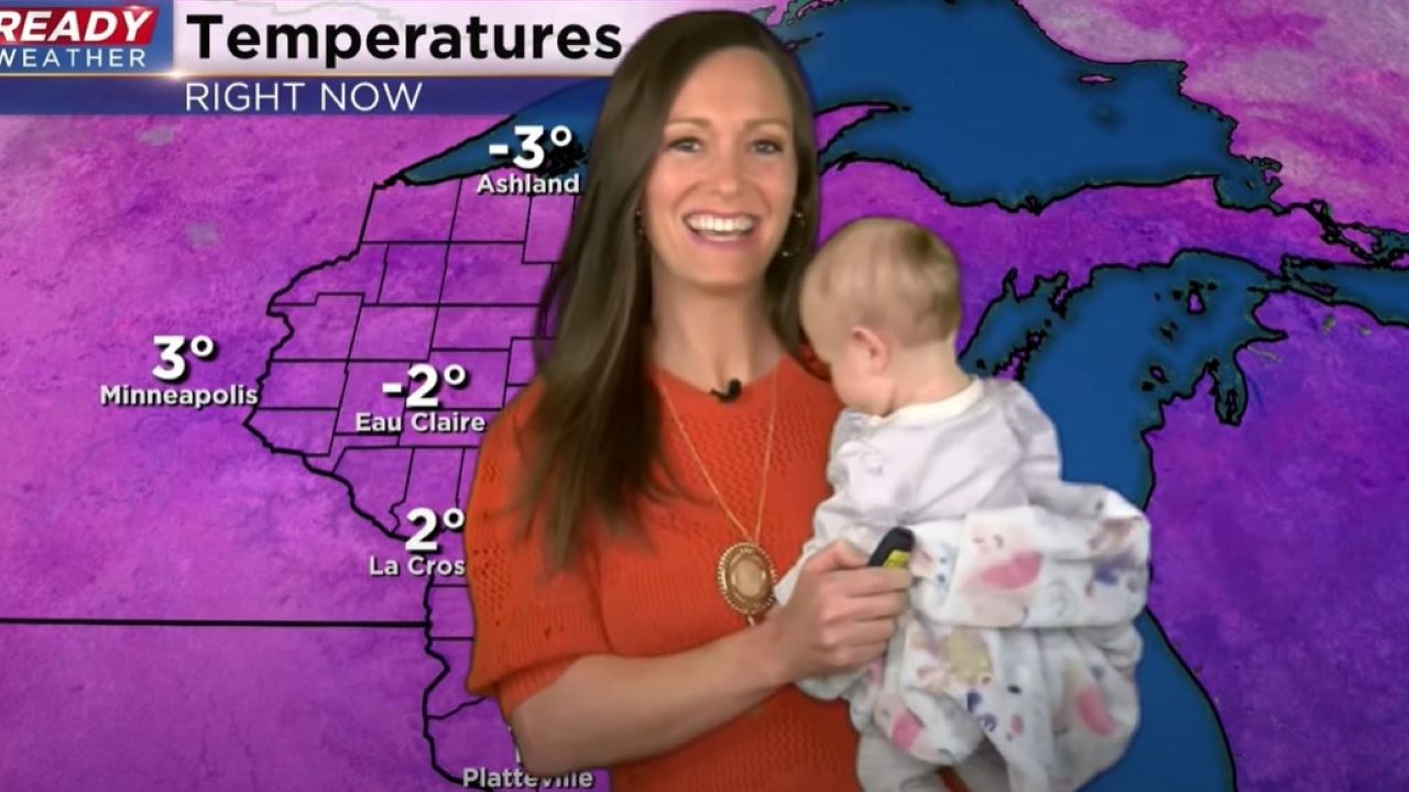Kisbabájával a karjában mondta el az időjárás-jelentést egy amerikai meteorológus – cuki videó
