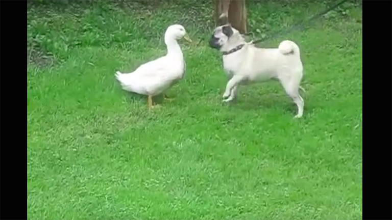 Cuki videó: így ismerkedik a mopsz a kacsával