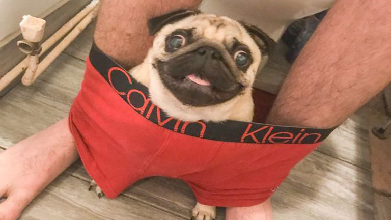 Még a vécén sem hagyja magára gazdáját a ragaszkodó mopsz