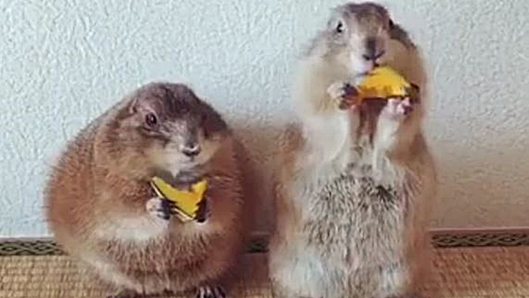 Az élet császára ez a mormota, aki meredten bámuló kutyák előtt ette meg pizzáját