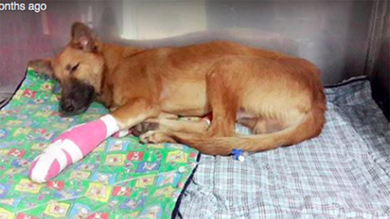 Művégtagokkal él tovább a kutya, akinek levágták a mellső lábait