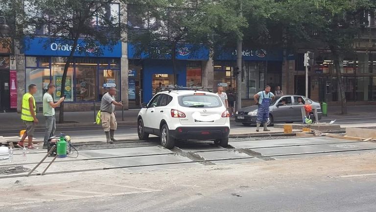 Belehajtott a nagykörúti villamospálya friss betonjába egy autós