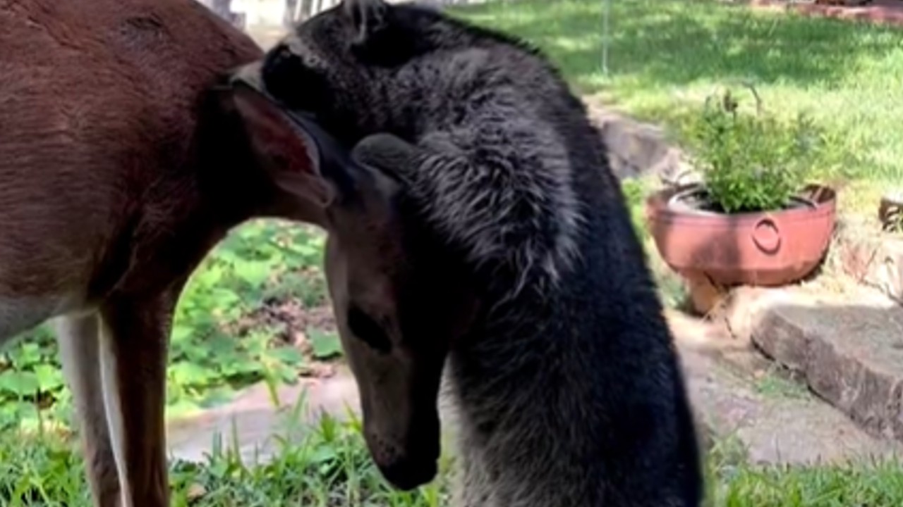 Csodálatos barátság alakult ki egy mentett mosómedve és szarvas között – videó