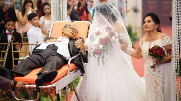 Betegágyon tolva kísérte lányát az oltárhoz a haldokló apa – videó