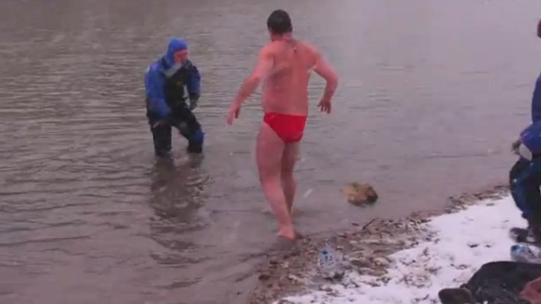 A fagyos Balatonban mártózva köszöntötték a tavaszt. Hogy mit?