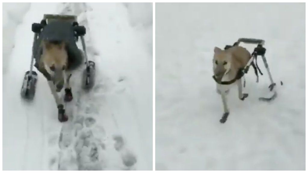Megható videó: sítalpakkal szaladgál a sérült kutya