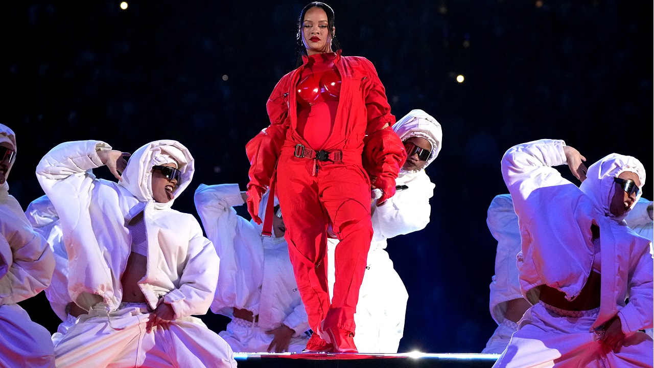 Több méter magasan lebegett a Super Bowl félidei show-jában a második gyermekével várandós Rihanna