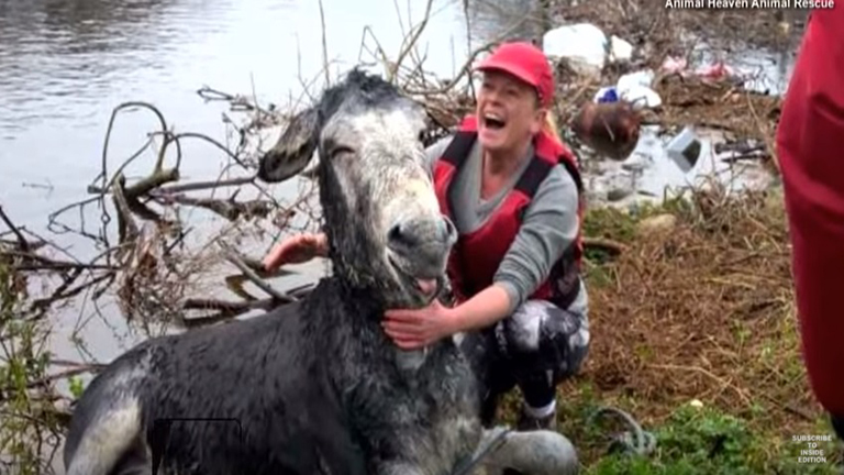 Ezer wattos mosolyt villantott az árvíztől megmentett szamár – fotók