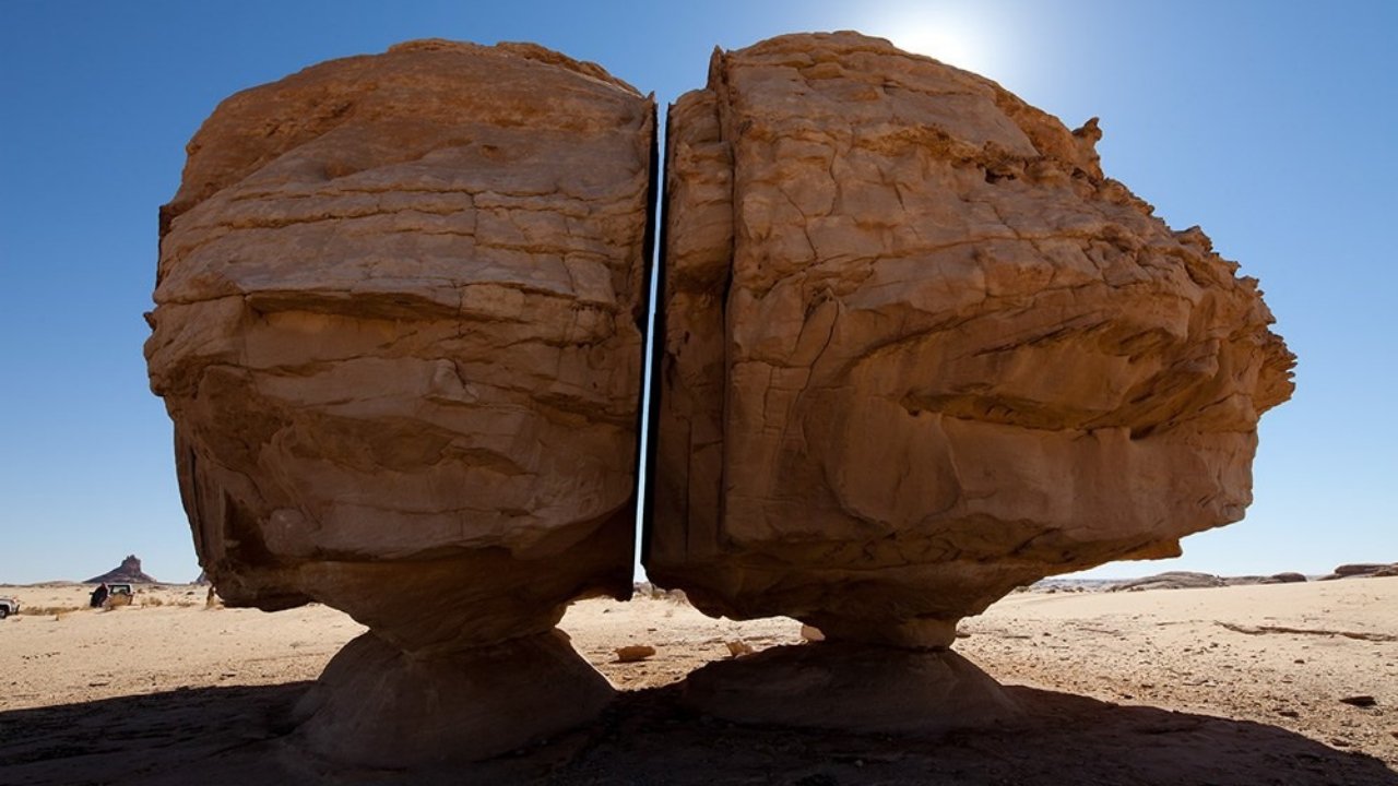 Rejtély a sivatag közepén: olyan, mintha kettévágták volna ezt a sziklát