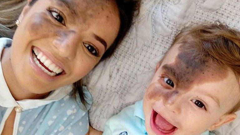 Ugyanolyan anyajegyet festett az arcára, hogy támogassa kisfiát