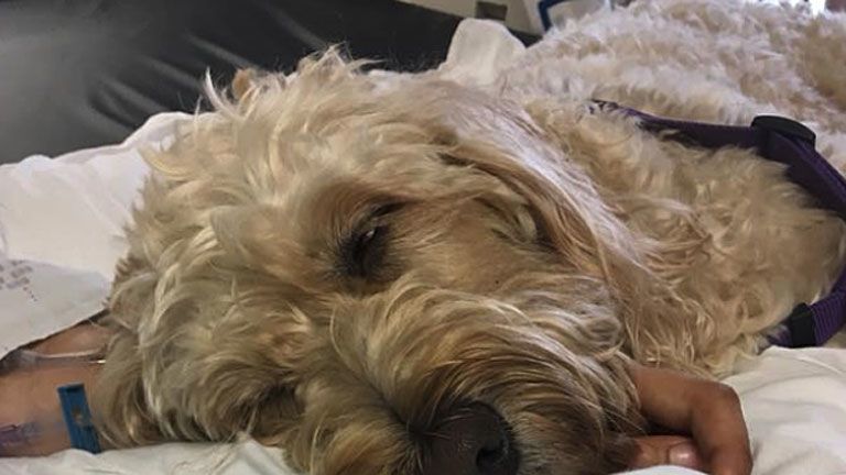 Az odaadó terápiás kutya egy percre sem hagyta el gazdija kórházi ágyát