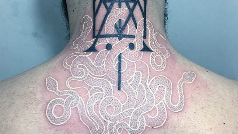 Misztikus fekete-fehér kígyókat tetovál az olasz művész