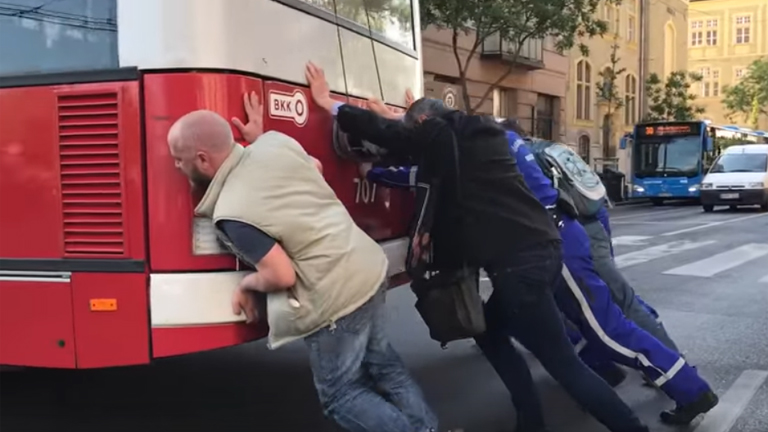 Az utasok tolták be a trolit a Dózsa György úton – videó