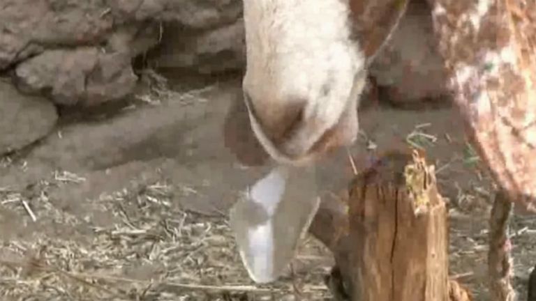 Fű helyett üveget eszik a kecske