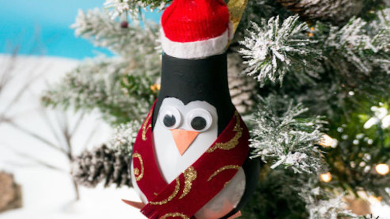 Készíts szupercuki karácsonyi pingvint egy kiégett villanykörtéből!