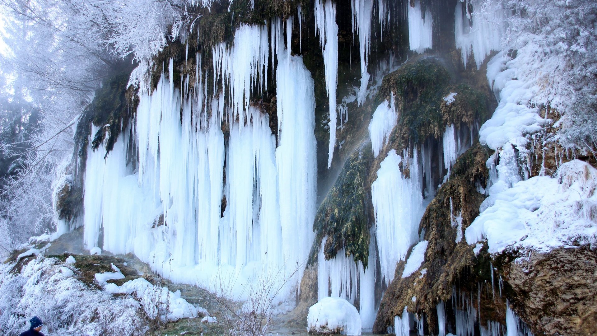 Csodájára járnak a befagyott vízesésnek a Mecsekben