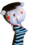 Húzzunk az alkarunkra egy harisnya- vagy nadrágszárat, esetleg egy pulóverujjat. Öltsük hozzá a fejhez – így bármilyen bábot hamar elkészíthetünk.