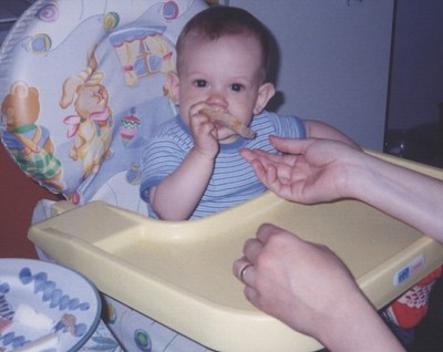 A legnagyobb próbatételt talán a darabosabb ételekre való átállás jelentette nyolc hónaposan. Bali kezdetben még a legkisebb daraboktól is köhögni, majd fulladni kezdett, halálra rémisztve bennünket. A férjem jó néhányszor kapta ki az etetőszékből a már megfulladni látszó, vörösödő fiunkat. Gyorsan fejre fordította, megütögette a hátát, és a baj elmúltával a kis haspók már csak azon igyekezett, hogy ne essen ki a szájából a falat.