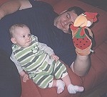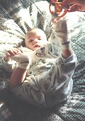 A csörgő felfedezésére tényleg várnom kellett két és fél hónapot. Az első próbálkozások után a játék szinte mindig Balázs fején landolt, de ez egyáltalán nem szegte kedvét. Arra is nagyon hamar rájött, hogy egy kis odafigyeléssel a még a pörgő állatfigurákat el lehet kapni, vagy meg lehet rúgni, így aztán kénytelenek voltunk leszerelni a szürrealista állatseregletet, mert félő volt, hogy a mi erős babánk egy hirtelen mozdulattal magára rántja az egészet.