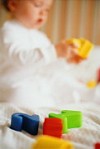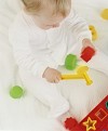 A kilencedik hónapban már üldögél, így aztán hosszasabban is eljátszik az egymásba és egymásra rakosgatható hordókkal, kockákkal.