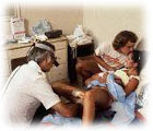 – Akkor kezdünk hozzá, amikor a magzati koponya már „fogva marad” a szeméremrésben. Ekkor arra kérjük az anyát, hogy rövideket nyomjon, aprókat lihegjen, hogy a fej fokozatosan, óvatosan gördülhessen ki. Közben vizes vattával tartjuk, megtámasztjuk a gáttájékot, fékezzük a fejet.