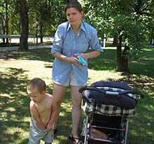 Igen, szeretnénk Balusnak testvérkét, de úgy néz ki, hogy a további sokasodással még egy ideig várnunk kell. Szerencsére bár tudom, ez nem ugyanaz mégsem kell teljesen lemondanunk más kisgyerekek társaságáról, hisz barátaink csemetéi ideális játszópajtásnak bizonyulnak. Tény, hogy Balázs pici kora óta szinte imádja a néhány évvel idősebb gyerekeket, de különös volt felfedezni, hogy kitüntetett figyelmet szentel a kislányoknak. S hozott már mulatságos vagy éppen furcsa helyzetbe bennünket azzal, hogy egy óvatlan pillanatban megsimogatott vagy megölelt a boltban vagy az utcán álldogáló, Balus akciójáról mit sem sejtő csöppséget. Bár a legnagyobb meglepetést egyévesen azzal okozta, amikor egy túlzottan rámenős kislány heves puszi és ölelésrohamára egy nagy pofonnal válaszolt, s először a könnyekkel küszködő kislányt kellett megvigasztalnunk, majd pedig a nagyon megszeppent, szipogó Balázst. Persze azóta eltelt több mint egy év, Balázs már nem pofozkodik, de azért mégis izgatottan indultunk augusztusban Gyulára, hogy a barátainkkal és az akkor 10 hónapos Dorkával töltsünk néhány napot.