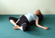 A pillangófekvés a következő póz, amit elvégzünk. Ez pihenteti a gerincet, az egész törzset, emellett tágítja a medencét a szüléshez. A hátunkra fekszünk, lábainkat térdben behajlítjuk, a talpainkat összeérintjük, és megpróbáljuk a lábakat ellazítani, így a térdek egyre közelebb kerülnek a talajhoz. Karjainkat a talajra fektethetjük, a törzs mellé, vagy felnyújthatjuk a füleink mellé, magastartásba.
