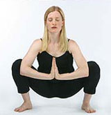 A guggoló póz – utkatasana – kitágítja a medencét, erősíti a láb izmait, biztosítja a hát alsó részének rugalmasságát, illetve a magas sarkú cipők viselése miatt elmerevedett izmokat is kilazítja. Jótékony hatással van a láb izületeire is. A lábakat kisterpeszbe helyezzük, leguggolunk, a gerincet megpróbáljuk kiegyenesíteni, a kezeinket a mellkas előtt összeérintjük, miközben a könyökökkel a térdeket próbáljuk egyre távolabb tolni egymástól. Ha a talpunk nem ér le teljesen, vagy nem érezzük biztonságosnak a pózt, gyakoroljunk a fal mellett, vagy egy széket is használhatunk támasztékként.