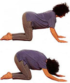 A törzs izmai lazák, belégzéskor elkezdünk homorítani, a deréktáji szakasztól indulva, majd a fejet is a plafon felé emeljük. Lassú kilégzés közben domborítunk, lehajtjuk a fejünket, és behúzzuk a farokcsontot. Legalább négyszer ismételjük ezt a macskapóznak nevezett gyakorlatot.