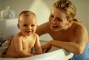Később már jöhet a fürdő, amihez fokozatosan szoktassuk hozzá a babát, nehogy megijedjen a víztől. Mindig tartsuk biztosan, és ne engedjük, hogy a szemébe, szájába víz, netán fürdető menjen! Egyedül pedig egy pillanatra se hagyjuk, még a legkisebb vízben sem! Ne a nagykádban fürdessük, mert az egyrészt nekünk is kényelmetlen lenne, másrészt érzékeny immunrendszere még nem biztos, hogy meg tudná védeni az esetleges fertőzésektől. A külön kiskád ajánlatos!