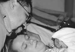 – Apuka, segítsen egy kicsit – kéri Szabolcsot a szülésznő -, fogja meg Andi fejét, hogy előre tudjon nyomni.