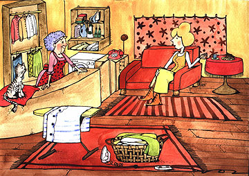 Gizella volt az első, aki felkereste Gabi néni mosodáját, és mivel Gizella éppen előző napon rakta tipp-topp rendbe az egész házat, hát volt ideje, hogy fecserésszen a Kék utca legújabb lakójával. Gabi néni angyali mosollyal hallgatta Gizellát, aki, mi tagadás, roppant mód örült, hogy egyszerre lett ilyen fontos és ilyen népszerű teremtés.